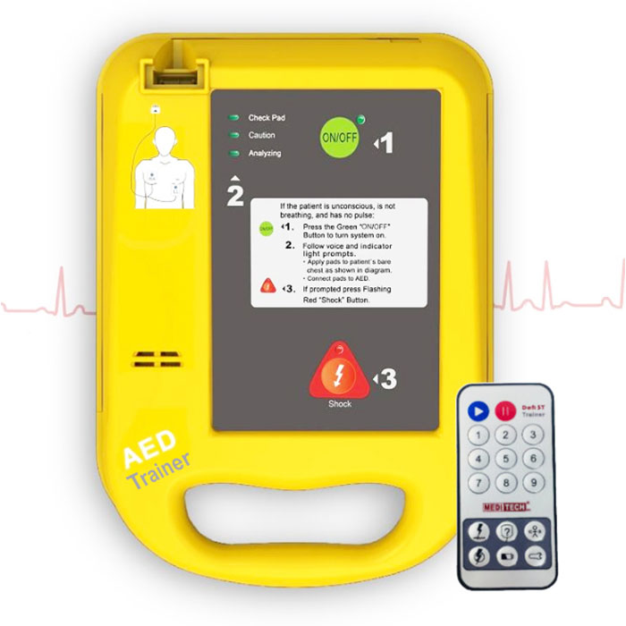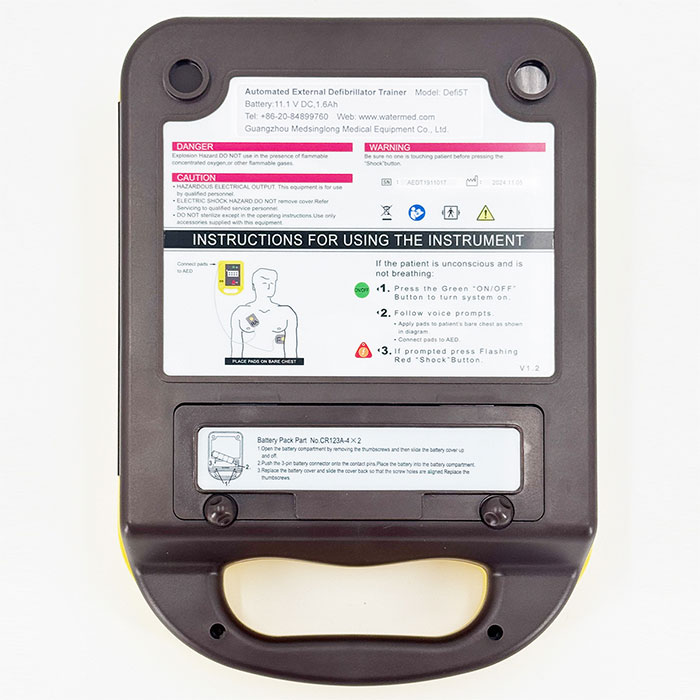 Only two buttons to operate the unit, a green ON/OFF to turn on the AED and the yellow one to deliver the shock to the victim. With the clear and simple audio and visual prompts, the MSLAED7 will guide you confidently through the defibrillation step by step.